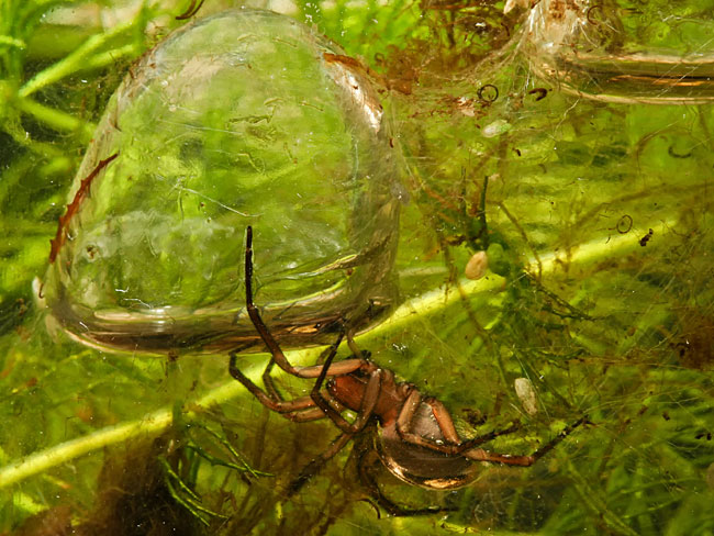 pravi mrežu ispod vode i ispunjava je vazduhom. Ona hvata vazduh sa