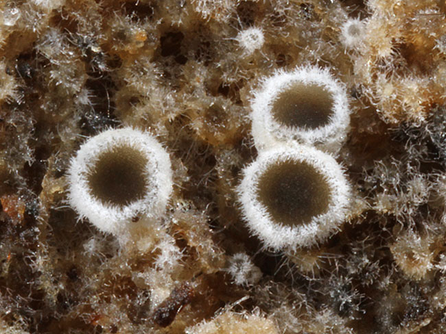 Opis: Raste u grupi na trulom drvetu, najčešće na hrastu (Quercus). Subikulum beo, obilan. Apotecije peharaste, sedeće ili u donjem delu sužene u vidu stopala ili kratke drške, prečnika 200-500 (-700) µm. Himenijum konkavan do ravan, maslinast do tamnobraon ili crn. Ivica jasna, dlakava, savijena na gore kad se osuši. Mikroskopske karakteristike: Subikulum obilan, beo, sastoji se od hifa prečnika 2-2,7 µm, debelih zidova (glatke ili sa inkrustacijama), sa brojnim pregradama. Dlake hijaline, sa pregradama, duge 20-40 μm, u donjem delu širine 2-2,7 μm, prilično debelih zidova, ponekad granate, glatke ili sa inkrustacijama spolja, prema vrhu sužene, vrh tup ili šiljat. Središnji ekscipulum od textura intricata, debljine 7-15 µm, sastoji se od hijalinih ćelija širine oko 2 µm, sa debelim zidovima. Spoljašnji ekscipulum debljine do 75 µm, prema ivici od textura prismatica, sastavljen od ćelija širine 2,7-3,4 µm, sa hijalinim do žućkastim, debelim zidovima (sadržaj ćelija žućkasto-braon do braon), a ispod od textura angularis do često textura globulosa, sastavljen od ćelija širine do 7,5 µm, sa tanjim žućkasto-braon zidovima (sadržaj ćelija žućkast). Askusi sa 8 spora, glavičasti, na vrhu zaobljeni, nepravilno bi- do multiserijatni, 30-47 x 4,1-5,5 µm, J+(p), kr.+. Parafize hijaline, končaste, jednostavne ili razgranate, nisu proširene na vrhu, iste dužine kao i askusi, širine 0,75-1,4 µm, pregrade retke. Spore 4,1-6,1 (9,6) x 1,4-2 µm, hijaline, subvretenaste, obično sužene u donjem delu, bez pregrada. Rasprostranjenost: Evropa (GBIF). Ref.: Korf, R. (1951) A Monograph of the Arachnopezizea.