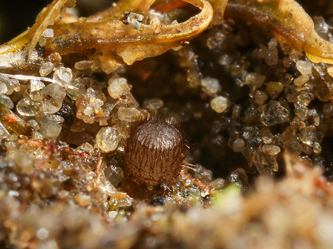 Opis: Saprob, raste u grupi od kraja leta do jeseni, na vlažnoj zemlji i vlažnim trulim ostacima grana listopadnog drveća. Apotecije tanjiraste, sedeće, prečnika 3-5 mm. Himenijum gladak, sivo-beo; ivica sa tamnim prstenom. Spoljašnja strana svetlija, prekrivena jasno razdvojenim dugim braon Dlakama. Dlake se obično dodiruju bočno, kao da su slepljene.