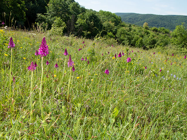 na sunčanim padinama, svetlim šikarama, proređenim šumama,