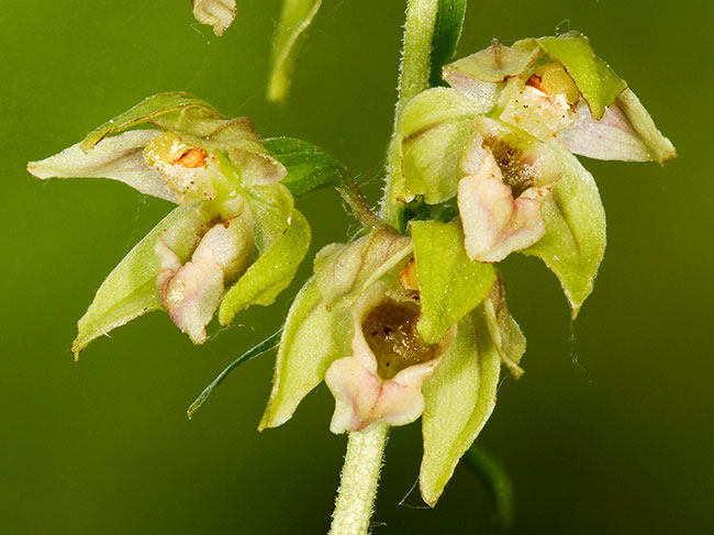 hrptenasti, većinom bledo ljubičasti. Labelum crvenkast, strči,