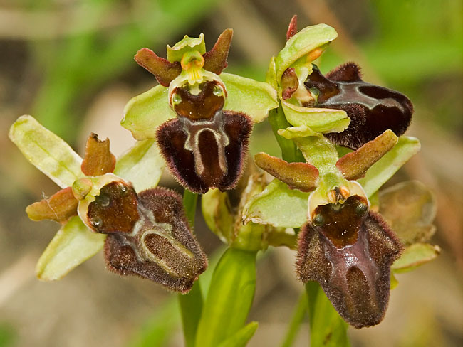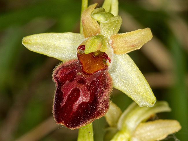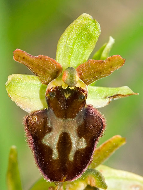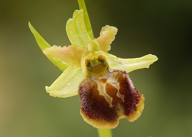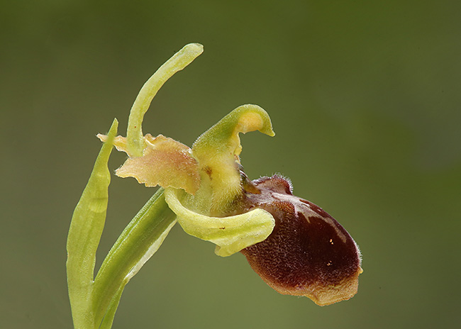 goli, svetlo zeleni do zelenkastomrki, crvenkasto oivičeni. Labelum