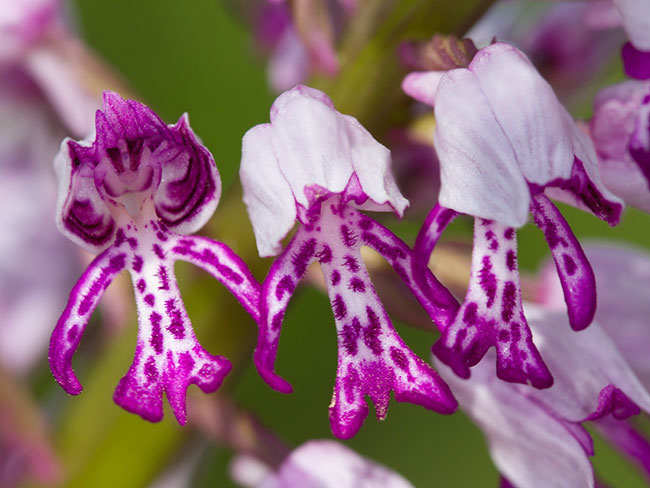 lancetaste, dosta zatvorene kacige, spolja bledo ružičaste boje,