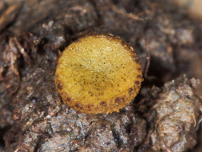 stelji. Apotecije sedeće, površinske, prečnika 0,5-1 mm, u