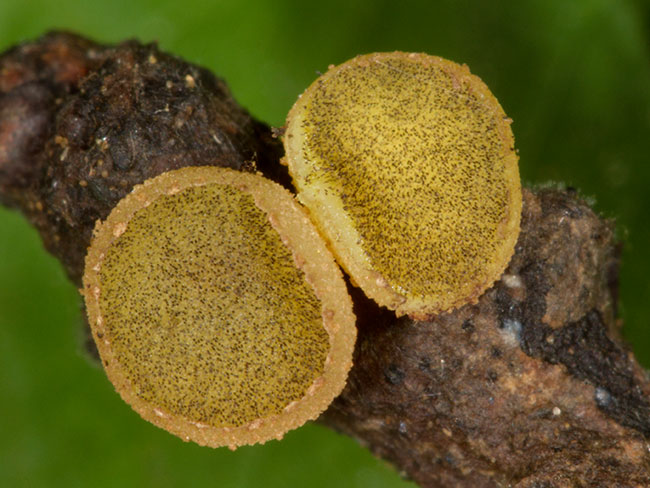 μm), uronjene u zeleno-žutu želatinoznu materiju. Spore