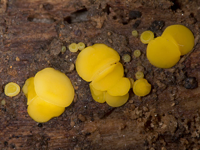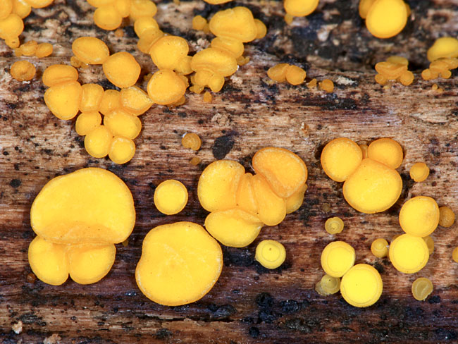 Opis: Saprofit, raste tokom jeseni u grupama na trulom drvetu listopadnog drveća. Apotecije prečnika 1-3mm, peharaste ili ispupčene; himenijum gladak, jarko žute, starenjem (i osušene) postaju narandžasto žute, često sa tamnijim ivicama; spoljašna strana glatka, bezbojna, svetlija od himenofora. Drška nedostaje ili je veoma kratka.