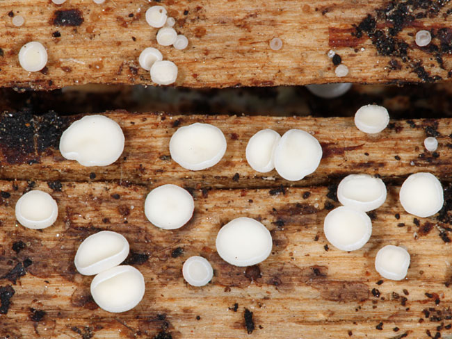 Opis: Raste u grupi, na trulim stabljikama različitih vrsta zeljastih biljaka. Apotecije površinske, prečnika 1-3 mm, subsedeće do sa kratkom drškom. Himenijum plitko konkavan, ravan ili blago konveksan, beličast, krem do svetlo žućkast. Receptakulum tanjirast, iste boje kao himenijum, fino dlakav. Mikroskopske karakteristike: Spoljašnji ekscipulum od textura prismatica, sastavljen od hijalinih ćelija sa tankim zidovima. Dlake na ivici cilindrične, postepeno se sužavaju, bez pregrada, hijaline, tankih zidova, glatke, bez ikakvog sadržaja, 8-20 x 3-4 µm. Dlake po obodu apotecije široko glavičaste do široko elipsoidno-vretenaste, dužine do 15 µm. Askusi sa 4-8 spora, cilindrični, 80-90 х 7-8 µm, J+(p), kr.+. Parafize cilindrične, širine do 2 µm. Spore vretenaste do cilindrično-vretenaste, blago nejednakostrane, hijaline, sa jednom pregradom, 13-17 x 2-3 µm, biserijatne. Rasprostranjenost: Evropa i Azija. Ref.: Raitviir, A. (2004) Revised synopsis of Hyaloscyphaceae.