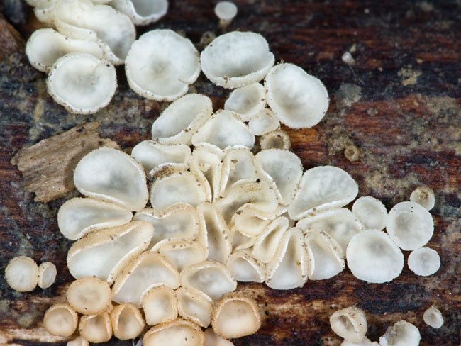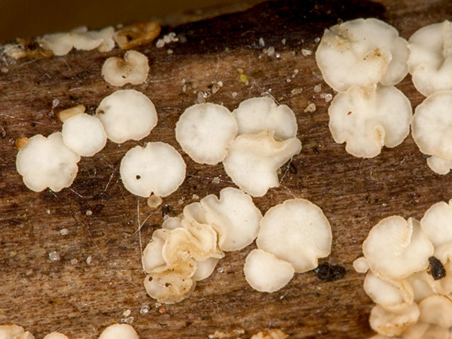 Opis: Raste razbacano ili u grupi, uglavnom na drvetu vrbe (Salix) bez kore ali i na drugim vrstama listopadnog drveća. Apotecije površinske, prečnika do 0,5-1 mm, sa kratkom drškom. Himenijum čisto beo kad je svež, a žućkast kad se osuši, konkavan do ravan, sa talasastom ivicom. Receptakulum kupulatan, beličast, sa dlakama na spoljašnjoj strani. Drška bezbojna, kratka, dužine 0.2-0.3 mm, glatka. Mikroskopske karakteristike: Spoljašnji ekscipulum od textura prismatica, sastavljen od hijalinih ćelija sa čvrstim zidovima, dimenzija 10-15 x 3-5 µm. Dlake cilindrične do blago glavičaste, na vrhu tupo zaobljene, bez pregrada, hijaline, tankih zidova, glatke, bez ikakvog sadržaja, 15-20 × 3-4 µm. Askusi sa 8 spora, cilindrično-glavičasti, 35-45 × 4-5 µm, J-, kr.+. Parafize cilindrične, širine 1,5-2 µm, ne nadvisuju askuse. Spore cilindrične do blago zakrivljene, hijaline, bez pregrada, 6-10 × 1,5-2 µm, sa 1-2 uljane kapljice na krajevima. Rasprostranjenost: Evropa i Grenland. Ref.: Morozova, I.I. (2014) New records of discomycetous fungi from Ukraine. Raitviir, A. (2004) Revised synopsis of Hyaloscyphaceae.