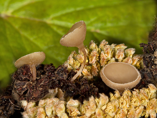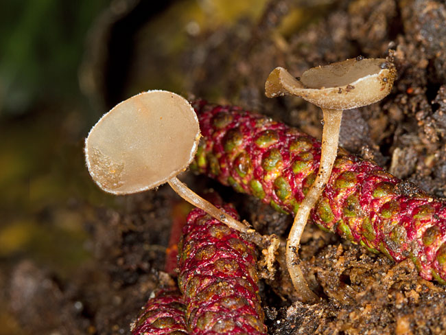 pojedinačno ili u manjim grupama na otpalim muškim resama leske