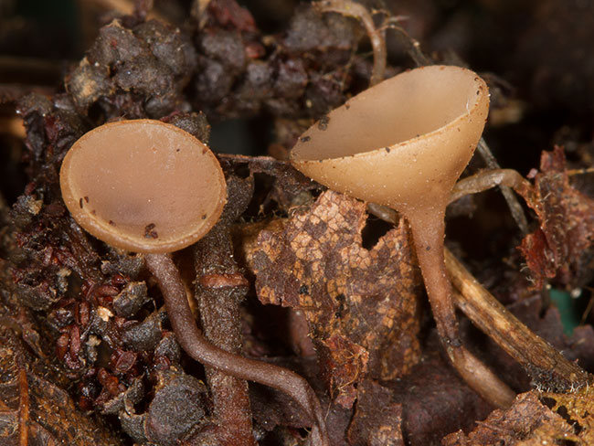 Drška duga, vijugava, 10-35 x 0,3-1 mm, tamnija od apotecije.