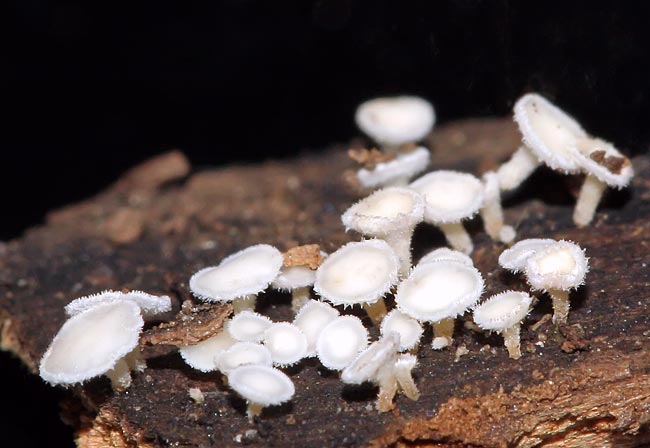 Opis: Raste pojedinačno ili u manjim do većim grupama na trulom drvetu uglavnom hrasta (Quercus) a znatno ređe na drugim vrstama listopadnog drveća (Fagus, Carpinus, Betula, Populus, Pyrus i Salix). Apotecije prečnika 0,5-1 mm, sa drškom. Himenijum konkavan, beličast kad je svež, beličast do svetlo žućkast kad se osuši. Receptakulum kupulatan do plitko kupulatan, čisto beo, gusto pokriven pravim dlakama koje su kraće na obodu a duže na ivici gde su bele kad su sveže a žućkaste i prekrivene sa narandžastim do braonkasto-narandžastim granulama kad se osuše. Drška cilindrična, tanka, duga do 0,5-1,2 mm. Mikroskopske karakteristike: Spoljašnji ekscipulum od textura prismatica, sastavljen od hijalinih ćelija sa tankim zidovima, 12-18 x 5-8 µm. Dlake cilindrične, hijaline, gusto granulisane sa jednom ili dve glatke vršne ćelije, 60-110 x 2-4 µm, sa 4-5 pregrada, sa retkim do brojnim kristalima i granulama kalcijum oksalata, gusto inkrustrirane sa tamno narandžastom amorfnom materijom rastvorljivom u KOH; vršne ćelije samo neznatno duže od ostalih ćelija, do 20 x 4 µm, subglavičaste sa zaobljenim vrhovima. Askusi sa 8 spora, cilindrični do cilindrično-glavičasti, 40-53 x 3-5 µm, J-, krozijer+. Parafize cilindrične do usko lanceolatne, bez pregrada, prečnika 1,5-3 µm, nadvisuju askuse do 12 µm. Spore elipsoidno-vretenaste, uniserijatne, ponekad blago glavičaste, hijaline, bez pregrada, bez inkluzija, (5-) 6-7,5 (-9) x 1,7-2,3 µm. Rasprostranjenost: Evropa i Azija. Ref.: Raitviir, A. (2002) A revision of the genus Dasyscyphella (Hyaloscyphaceae, Helotials).