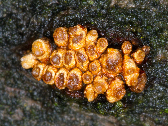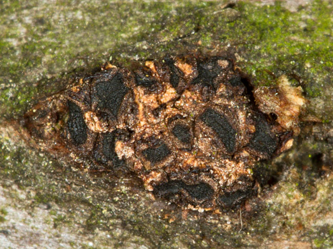prečnika 2-5 mm, izlaze iz strome ispod kore, izranjaju iz