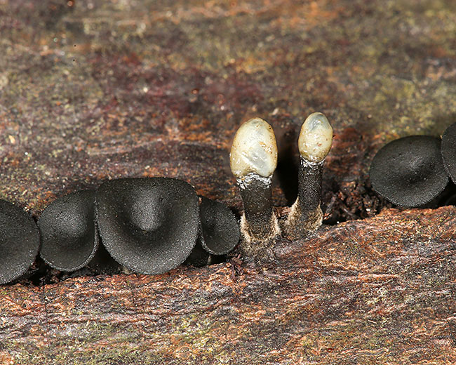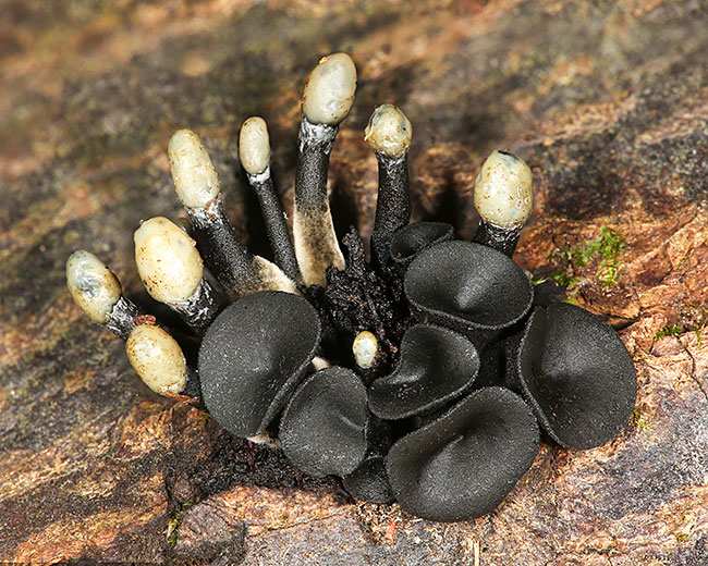 Opis: Saprofit, raste na kori trulog drveta, najčešće lipe i jove. Apotecije rastu pojedinačno ili u grupi, 2-15мм u prečniku, obkonične, sa blagim udubljenjem u sredini, sa spoljne strane sitno naborane, maslinasto braon do crne boje; u donjem delu se produžavaju u dršku; baza drške sužena, sitno bradavičava; sa spoljne strane sitno naborana, maslinasto braon do crne boje. Aseksualni stadijum se javlja nezavisno ili zajedno na istom mestu sa seksualnim i naziva se Crinula caliciformis. Ima oblik šibice odnosno crne drške sa sluzavom sivkasto-žućkastom ili beličastom glavičastom masom na vrhu.