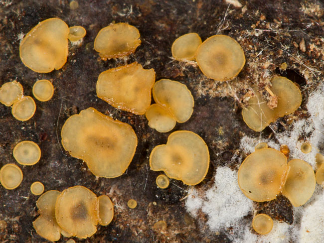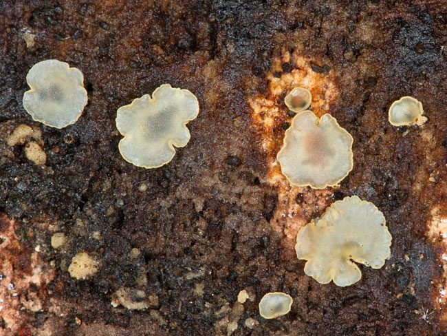 Opis: Saprofit, raste u grupama na trulom drvetu raznih vrsta drveća. Apotecije peharaste do diskoidne, prečnika 0.5-1 (1,5) mm, glatke, subsedeće, spljoštene ili konkavne kad su vlažne, svetle, žućkasto bele kad se osuše, sa ravnom ivicom. Za podlogu su pričvršćene središnjim delom i na tom mestu se obično vide bele bazalne hife.