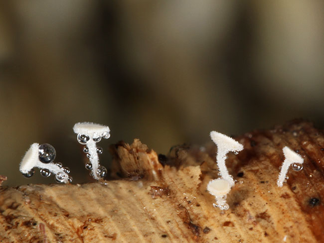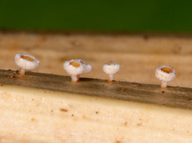 prečnika do 0,5 mm, u početku peharaste a kasnije raširene. Himenijum