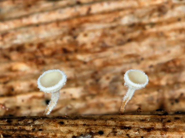 ivica pokriveni gustim belim dlakama. Drška tanka, visine 0,2-0,25 mm,