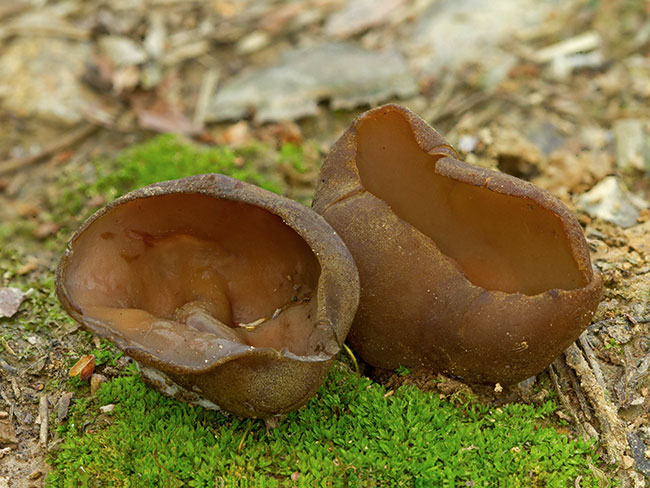 Opis: Saprob, raste od kasnog leta do jeseni u grupi najčešće na peskovitim zemljištima po šumama, rubovima šuma i često na otvorenim terenima. Apotecije sedeće, prečnika 3-8 (10) cm, peharaste, zrele nepravilno talasaste. Himenijum maslinasto-braon; spoljašnja strana ccrvenkasto-braon, pomalo dlakava, posebno ka ivici. Meso tanko, krto, crvenkasto-braon, bez posebnog mirisa i ukusa