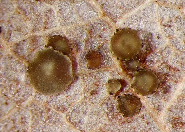Opis: Raste u grupi na otpalim listovima uglavnom hrastova (Quercus) ali i na drugim vrstama listopadnog drveća. Apotecije sedeće, plitko peharaste, prečnika 0,2-0,4 mm, nepravilnih ivica. Himenijum gladak, bledo siv. Mikroskopske karakteristike: Reakcija sa KOH negativna. Spoljašnji ekscipulum od textura globulosa ili t.subglobulosa, sastavljen od ćelija sa sivo-braon zidovima prečnika do 12 µm. Ivične ćelije ± glavičaste ili subcilindrične, sivkaste, duge 20-32 µm, poslednji članak širine 5-7 µm. Askusi sa 8 spora, cilindrično-glavičasti, biserijatni, 28-34 x 4-4,5 µm, J+(p), kr.+. Parafize cilindrične, prečnika 3-4 µm, hijaline. Spore vretenaste, ponekad blago zakrivljene sa jedne strane, hijaline, 6-8 (-9) х -1,2-1,8 (-2) µm, bez uljanih kapi (retko sa uljanim kapima na krajevima). Rasprostranjenost: Evropa (GBIF). Ref.: Van Vooren, N. (2010) Sur quelques Mollisia récoltés à la session Ascomycètes en mai 2010.