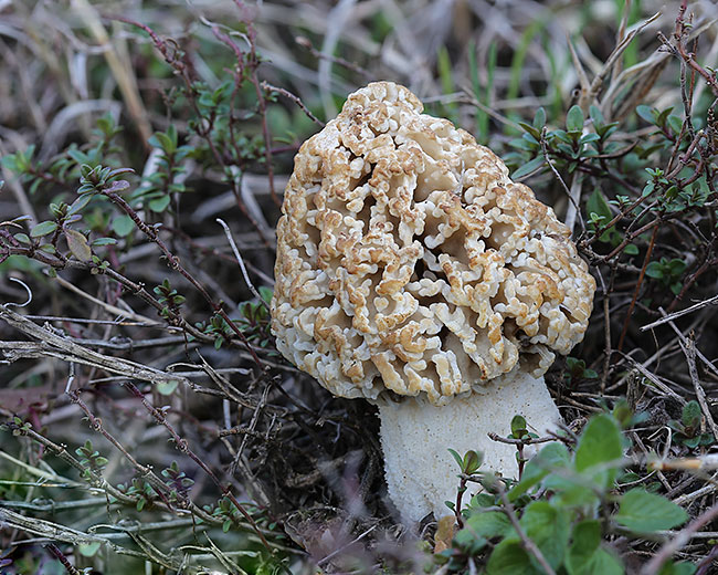 Opis: Raste u proleće, pojedinačno ili u grupi na livado-stepskim staništima. Plodno telo zdepasto, nepravilnog oblika, do 10 cm visine, u početku sivo-braon a kasnije dobija žutu nijansu. Šešir sa veoma zgusnutim rebrima, posebno u mladosti, zbog čega su alveole veoma uske i duboke, nepravilnog oblika. Drška u početku široka i čvrsta a tek kasnije, kako raste, pojavljuju se šupljine u njoj i rebra po površini.