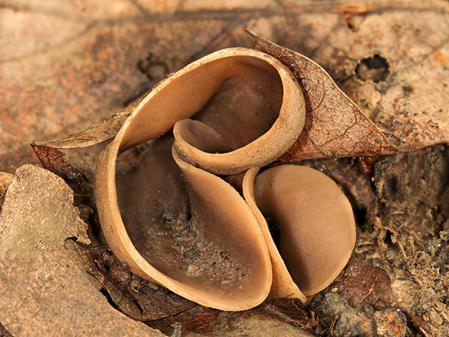 Opis: Saprob, raste pojedinačno ili u grupi od kasnog leta do jeseni na zemlji po listopadnim šumama. Apotecije prečnika 3-6 cm i visine 2-5 cm, nepravilno režnjevite, često sa jedne strane veće (ali nisu jasno uholike), tamne, boje ilovače do sivo-braon. Spoljašnja površina oker, glatka do dlakava. Meso gusto, žućkasto.