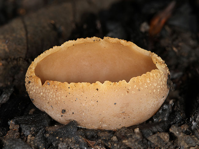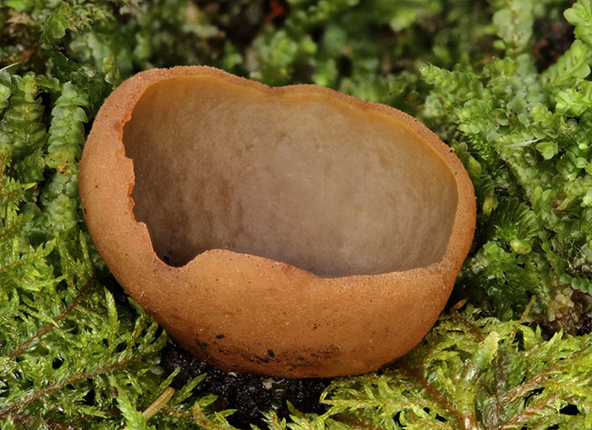 Opis: Saprob, raste tokom cele godine u grupi na zemlji a često se javlja i po podrumima, na vlažnom malteru ili trulim džakovima. Apotecije nepravilno peharaste, prečnika 1-5 (10) cm, sedeće, u donjem delu sužene nalik dršci (10-25 x 8-20 mm). Himenijum bledo žućkast, kao poliran; spoljašnja strana slične boje, dlakava, perutava, ka osnovi tamnija; ivica valovita. Meso bledo, vrlo krto, lomljivo, blakog mirisa.