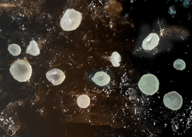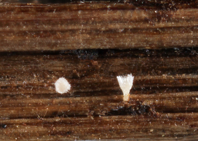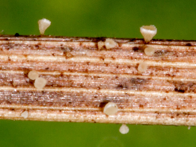 Opis: Raste razbacano na trulim ostacima biljaka iz familija Poaceae i Cyperaceae. Apotecije površinske, sa kratkom drškom, prečnika 0,1-0,45 mm. Himenijum beličast. Receptakulum peharast, beo, prekriven belim dlakama koje prelaze ivicu. Drška tanka, dužine kao polovina prečnika apotecije. Mikroskopske karakteristike: Spoljašnji ekscipulum od textura prismatica, sastavljen od hijalinih ćelija sa tankim zidovima. Dlake usko konične, zaobljene, udružene u male grupe, hijaline, 30-50 × 2-4 µm, sa glatkim, tankim zidovima. Askusi sa 8 spora, cilindrično-glavičasti, 25-40 × 4-5 µm, J+(p), kr.+. Parafize lanceolatne, granate pri osnovi, obično sa 2 pregrade, sadrže brojne uljane kapi, širine do 5 µm, nadvisuju askuse do 20 µm. Spore glavičaste, nejednakostrane, bez pregrada i uljanih kapi, 6-9 × 1,5-2 µm. Rasprostranjenost: Evropa. Ref.: Raitviir, A. (2004) Revised synopsis of Hyaloscyphaceae.