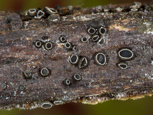 Opis: Saprob, raste u grupama pri osnovi trulih stabljika različitih, uglavnom krupnijih zeljastih biljaka. Apotecije sedeće, u početku okruglaste a zatim postaju ravne, prečnika 0,5-1 mm. Himenijum sivo-maslinast, gladak; ivica svetla, valovita, sa dlakama. Spoljašnja strana iste boje ili tamnija od himenijuma, prekrivena dlakama.
