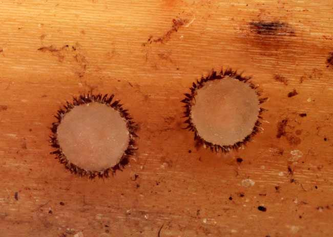 Opis: Raste u pojedinačno ili u grupama na trulim stabljikama zeljastih biljaka. Apotecije površinske, sedeće, prečnika 0,5-1,2 mm, peharaste dok su mlade a zatim tanjiraste, sa gusto dlakavom ivicom. Himenijum beo do sivo-oker, gladak. Spoljašnja strana gusto pokrivena krutim, crveno-braon dlakama. Mikroskopske karakteristike: Askusi sa 8 spora, cilindrično-glavičasti, biserijatni, 40-60 × 4-5 µm, J+(p), kr.-. Parafize usko lanceolatne, širine 2,5-5 µm, duže od askusa. Spore cilindrične do vretenaste, glatke, hijaline, bez pregrada, (6-) 7-10 × 1,5-2 µm. Ivične dlake crveno braon, umereno debelih zidova, sa pregradama, glatke, zaobljenih krajeva, sa svetlijim poslednjim segmentima, 110-200 x 3-4,5 µm. Rasprostranjenost: Evropa. Ref.: Breitenbach, J. & Kraenzlin, F. (1984) Champignons de Suisse, tome 1. Dimitrova, E. (2000) A taxonomic study of Hyaloscyphaceae in Bulgaria. II. Dasyscyphus, Lachnum, Trichopezizella.