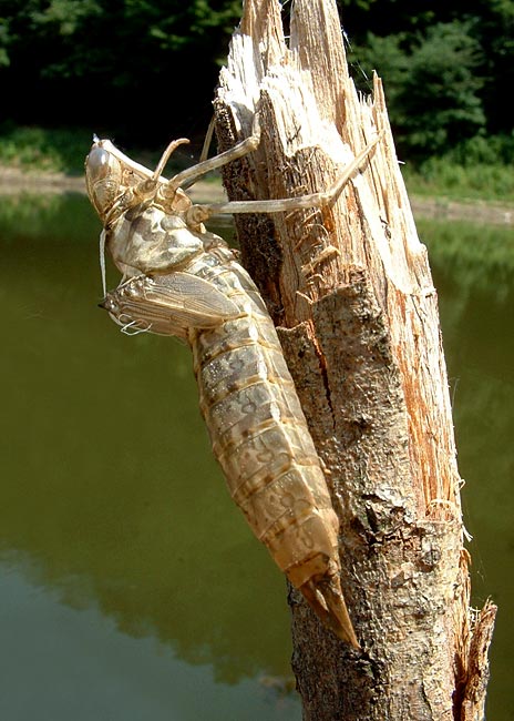 jedinke ostavljajući odbačenu košuljicu na biljci. Novi adulti prolaze