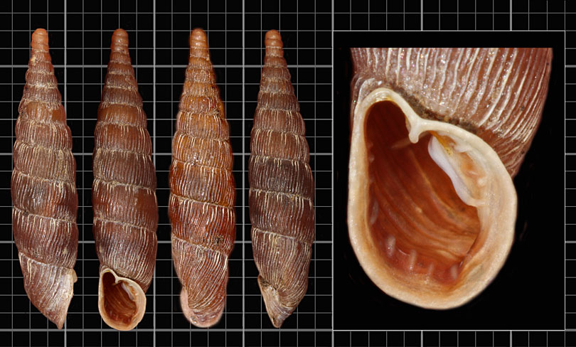 kućica braon, sa 12-13 gusto rebrastih zavoja, duž šavova rebra često