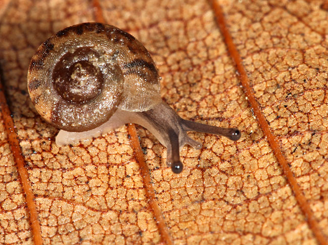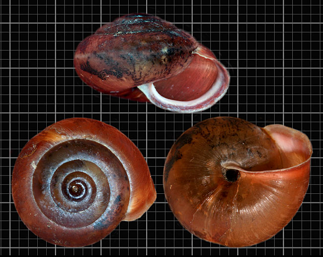 kolumele, uvek je otvoren. Puž je bledo crvenkaste boje sa tamno sivim
