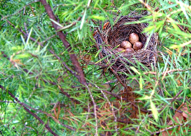 Gnezdo gradi u gustom žbunju, i spada u česte gnezdarice