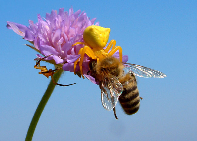 svoj plen u zasedi, prva dva para nogu koja mu služe za hvatanje